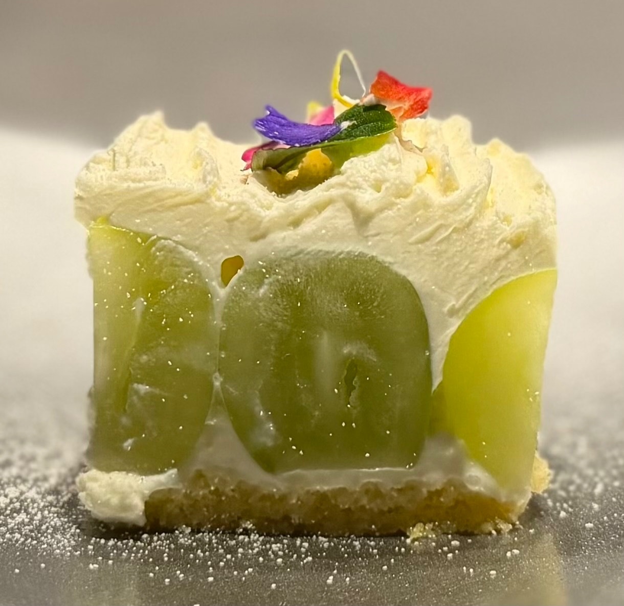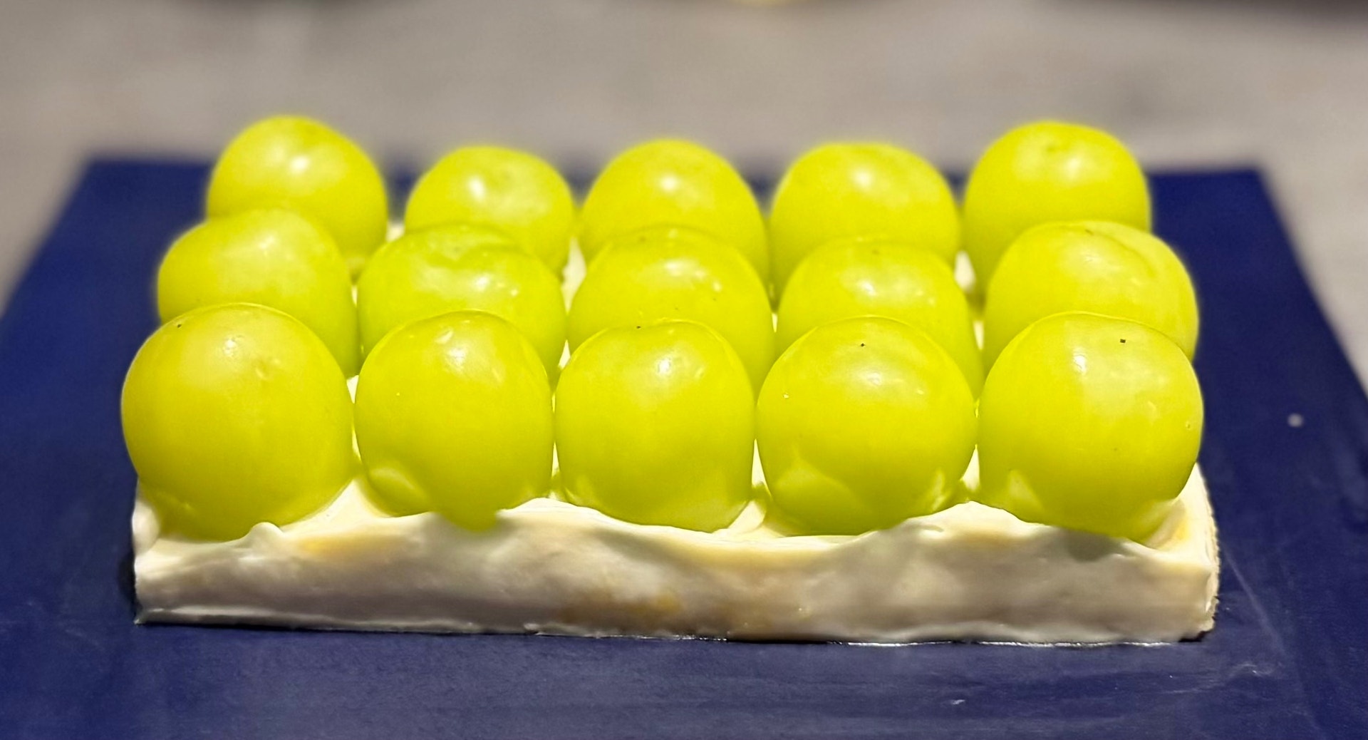 シャインマスカットのリキュールのショートケーキ マルカルポーネチーズ ホワイトチョコレートのパウダー
