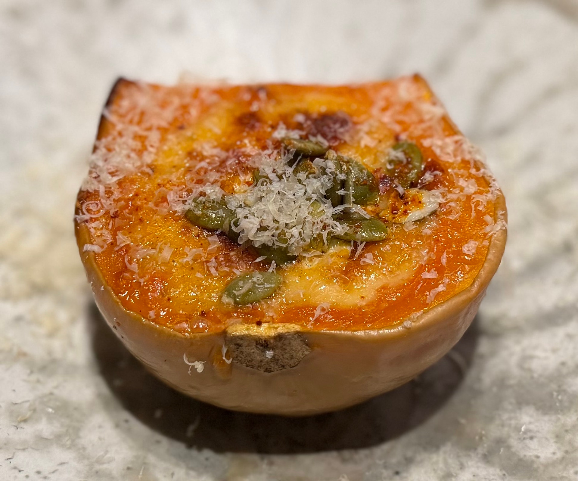 甲州和牛とソワ・ノワールのソースのしっとりとしたコク深さ。それに合わさる極上の巨大南瓜グラタンの果実な甘さ,ステーキに合わせる南瓜ドフィノワですね😌